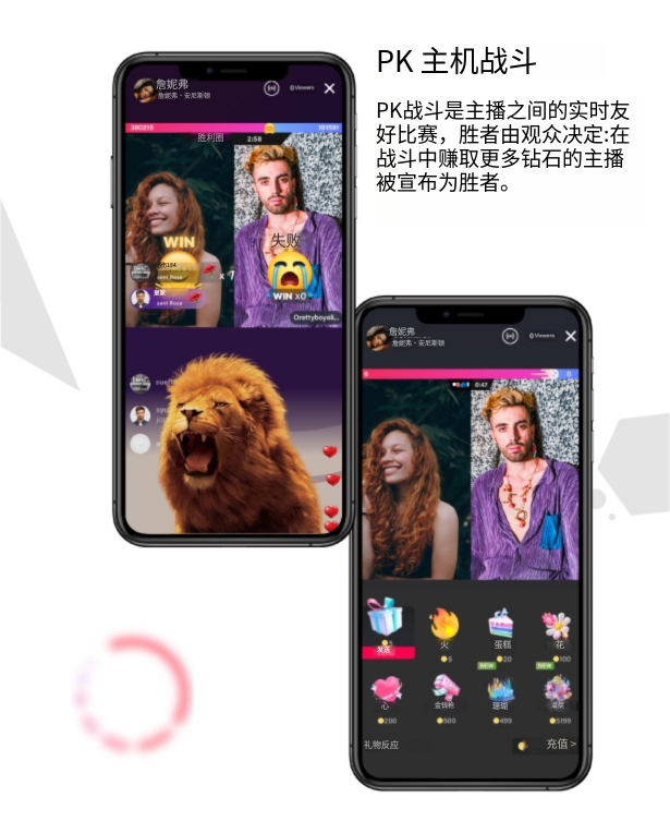 - 实时直播互动:集成高清直播功能,支持观众连麦互动、虚拟礼物打赏、付费直播间及“双人直播”模式,打造核心盈利场景与粉丝互动阵地。
