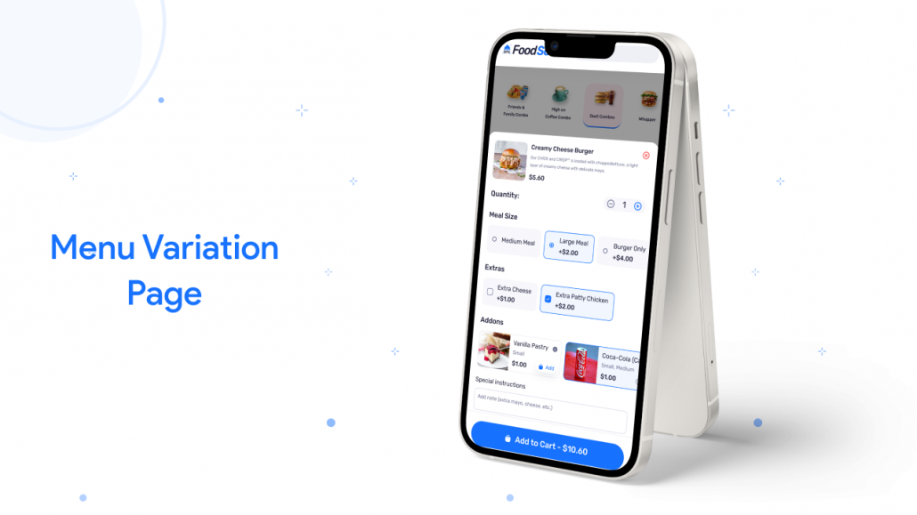 3、购物车管理显示已选菜品及变体组合支持附加选项配置