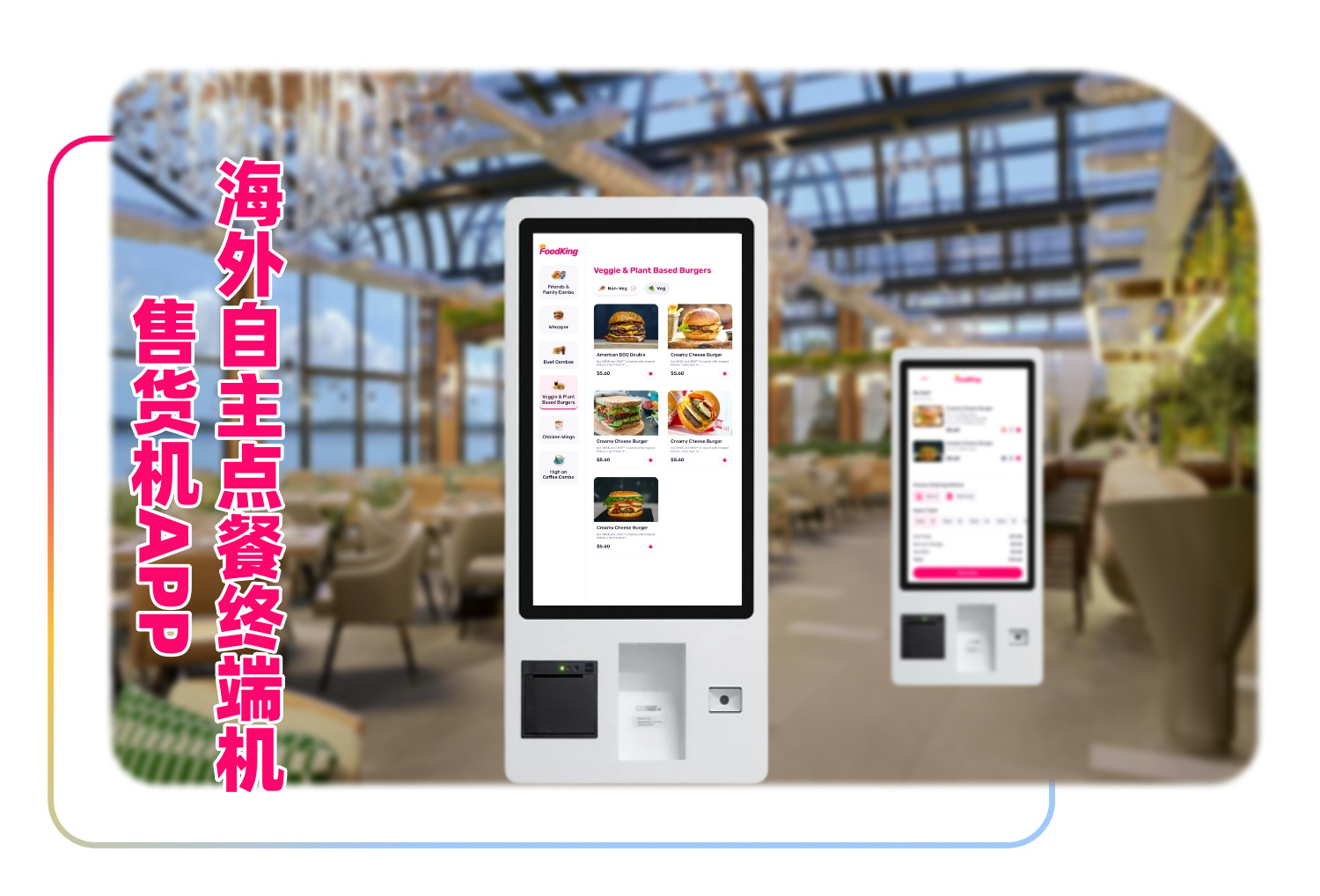 这是一个强大的餐厅自助点餐 支持自助终端机/售货机/kiosk 应用程序,手机扫码支持点餐APP、平板点餐APP、自助终端机点餐,支持自助终端机/售货机,可以提升顾客点餐体验。它设计得既简单又快捷,允许顾客浏览菜单、自定义订单并直接在自助终端机/售货机/kiosk上进行支付。与 订餐系统完全集成,确保订单能够顺畅地传送到厨房,并提高整体服务效率。