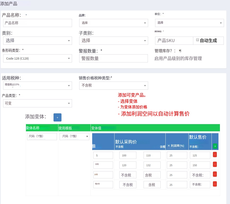- 无需每次都输入变体,创建变体模板,并在每次需要创建可变产品时使用它。