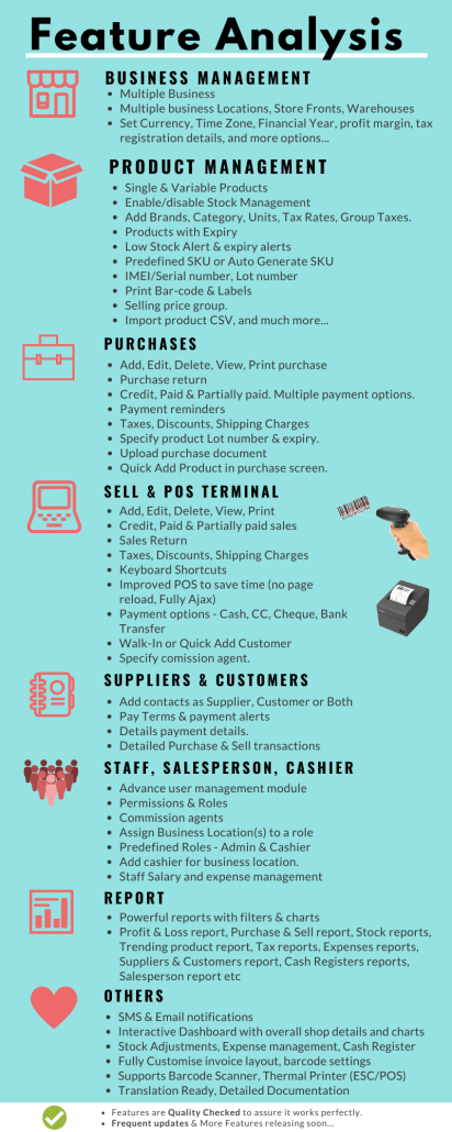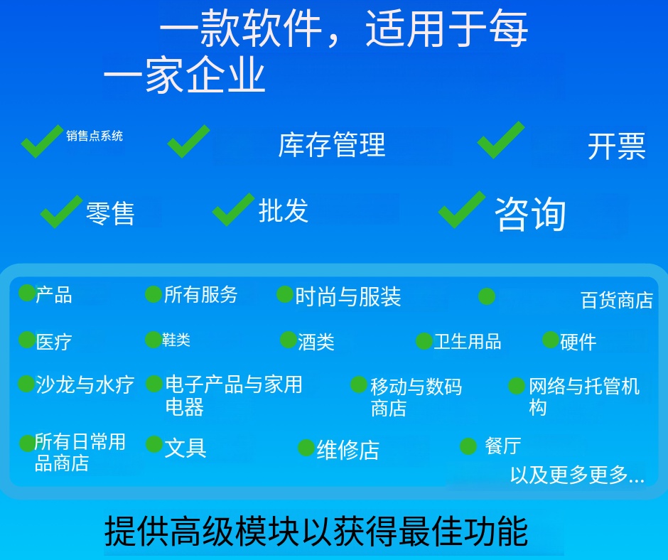 - 库存调整、费用管理、收银机完全自定义发票布局和条形码设置支持条码扫描器、热敏打印机(ESC/POS)