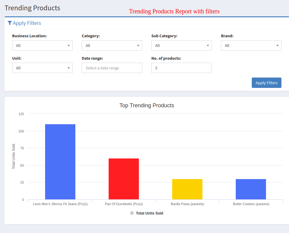 - 查看热门产品,并按品牌、类别、子类别、数量和日期范围进行筛选。